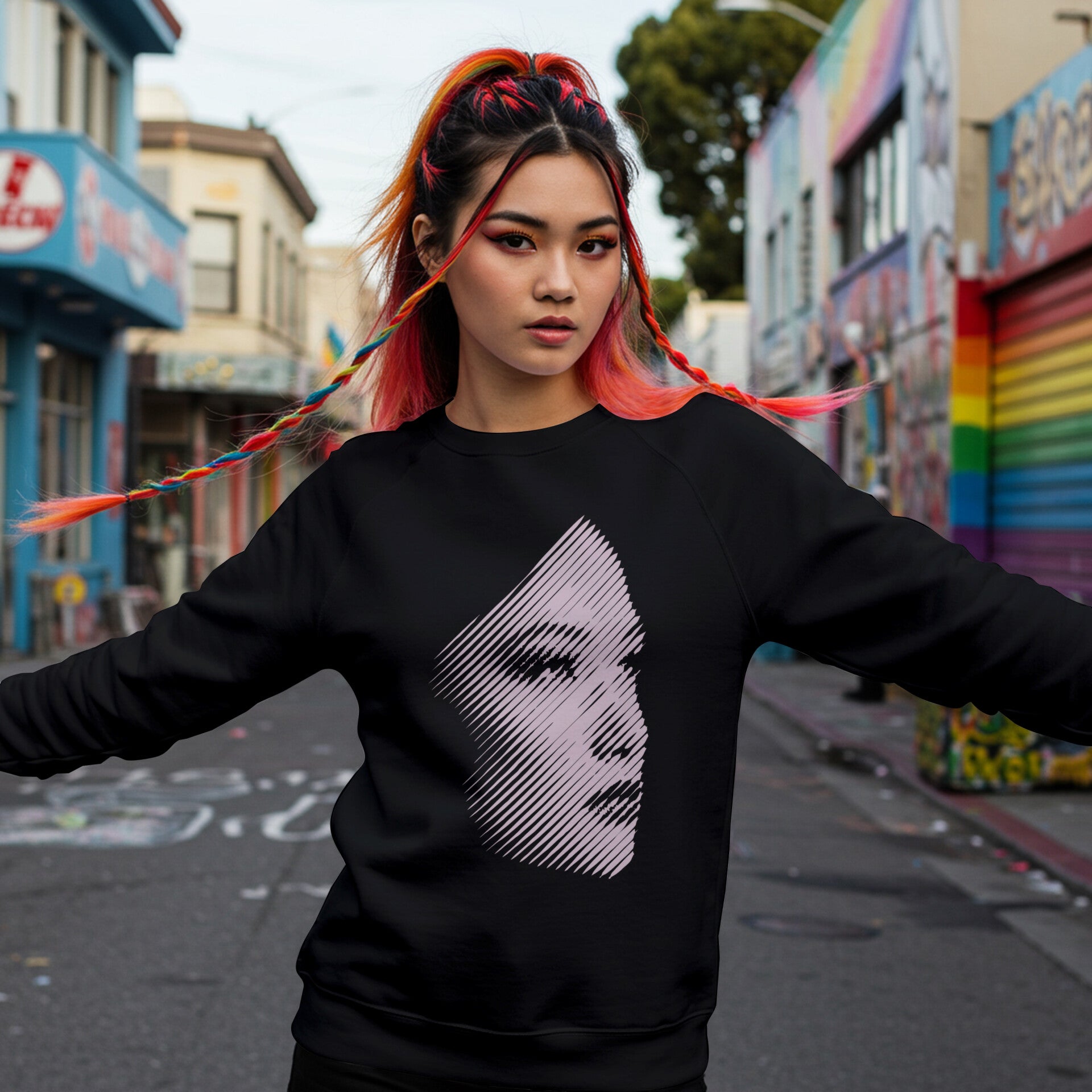 Dieser Sweater mit Line Art Frauenkopf vereint zeitloses Design mit urbaner Coolness. Die künstlerische Darstellung eines Frauenporträts in feiner Linienführung macht den Pullover zu einem echten Statement – ruhig, stark und stilvoll zugleich.