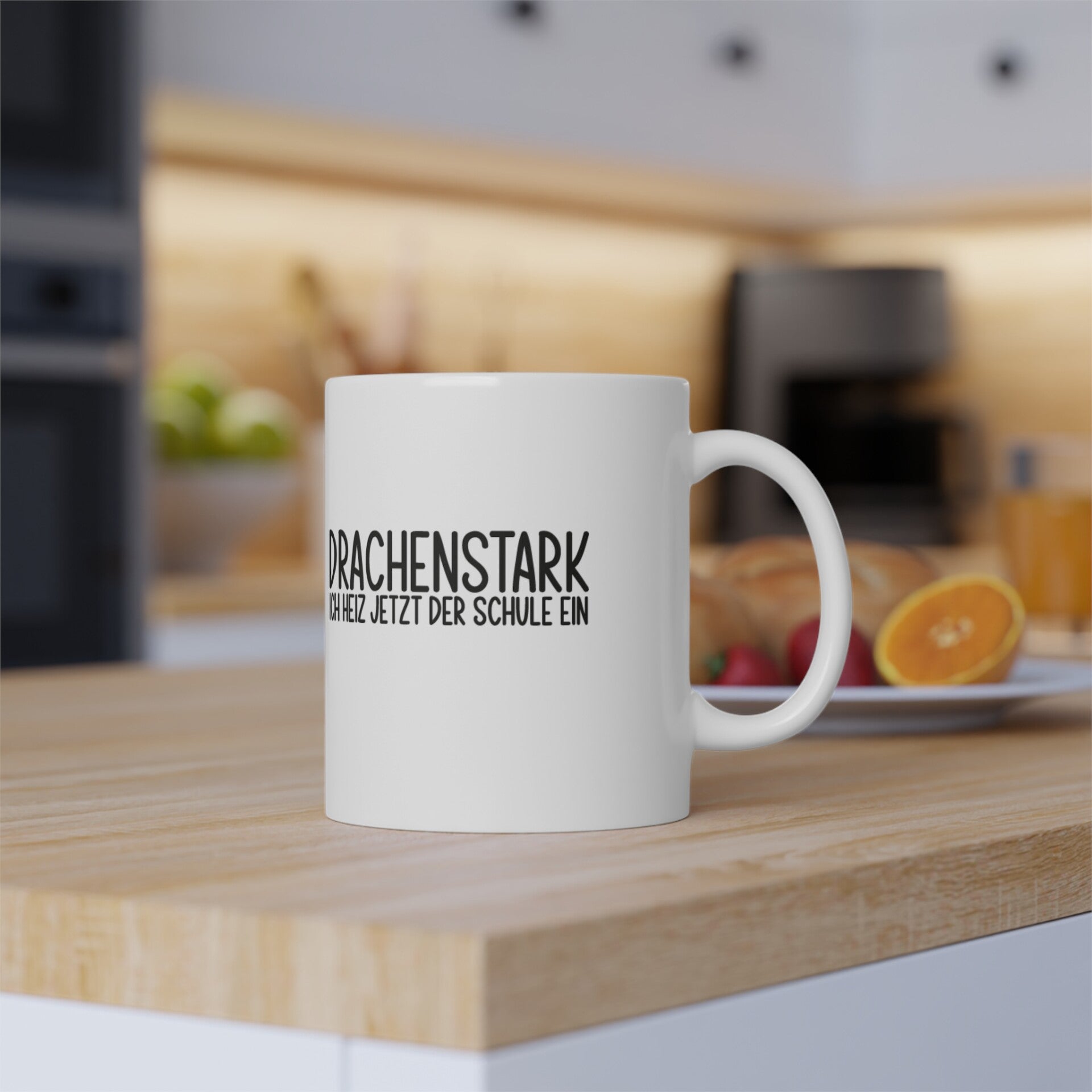 Mit dieser Tasse wird der Schulanfang zum Abenteuer: Ein frecher Drache, kräftige Farben und der mutmachende Spruch „Jetzt heiz ich der Schule ein!“ – perfekt für alle, die voller Energie in ihren neuen Lebensabschnitt starten.