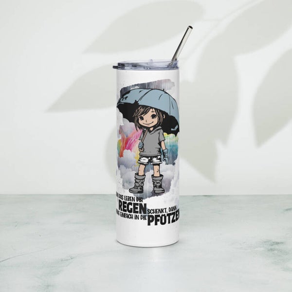 Dank des mitgelieferten Deckels und dem wiederverwendbaren Metallstrohhalm wird jedes Getränk zum praktischen Genuss – egal ob unterwegs, im Büro oder zu Hause. Der Becher fasst großzügige 600 ml und ist durch seine zylindrische Form nicht nur angenehm in der Hand, sondern auch vollständig rundum bedruckbar.