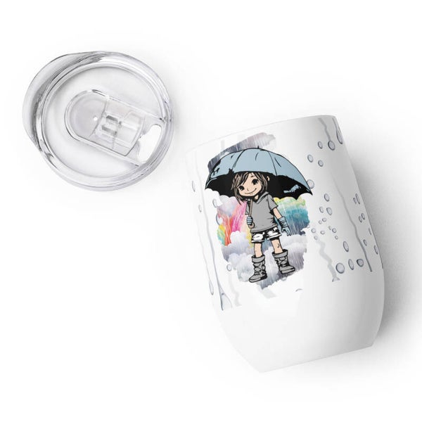 Egal, ob lauer Sommerabend oder gemütlicher Winterabend auf der Couch – dieser Weinbecher ist dein perfekter Begleiter für entspannte Genussmomente. Das liebevolle Motiv „Mädchen mit Regenschirm im Regen“ verleiht dem Becher eine romantische, verträumte Note und macht ihn zu einem echten Blickfang.