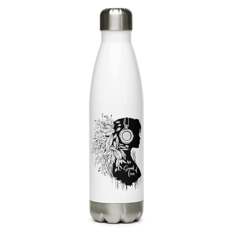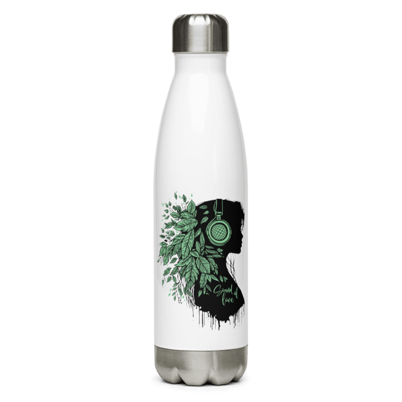 Mit dieser hochwertigen Edelstahl-Trinkflasche bleibt dein Lieblingsgetränk den ganzen Tag perfekt temperiert. Das exklusive „Sound of Love“-Motiv zeigt eine elegante Silhouette mit Kopfhörern, umgeben von filigranen Blättern, und den Schriftzug „Sound of Love“.