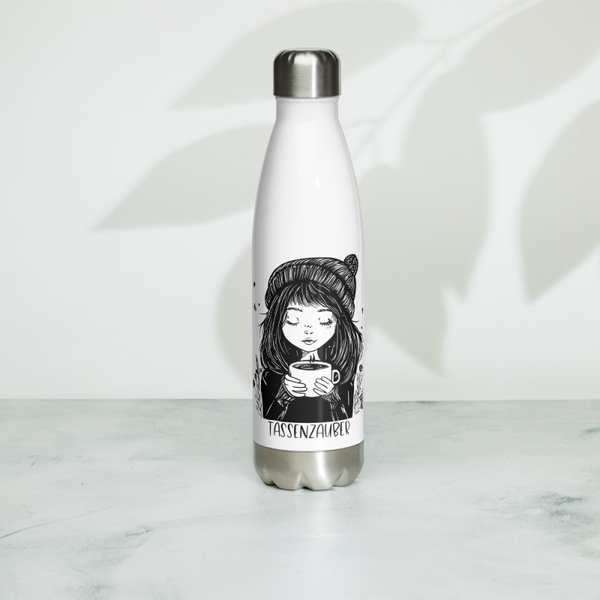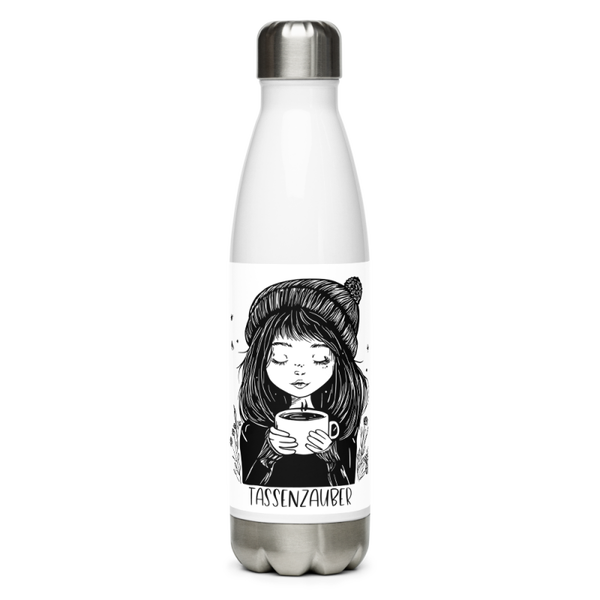 Mit der Trinkflasche „Tassenzauber“ genießt du deine Lieblingsgetränke überall – stilvoll, praktisch und nachhaltig. Das verträumte Motiv mit dem Mädchen und ihrer Tasse verkörpert Wärme, Ruhe und Gemütlichkeit – genau das, was man sich unterwegs wünscht.