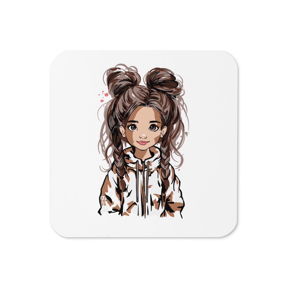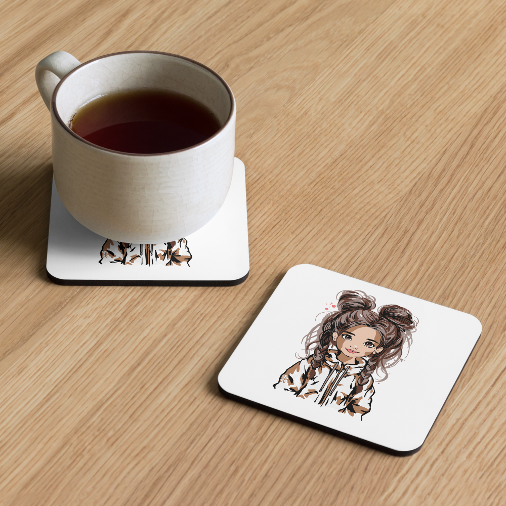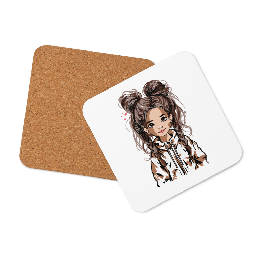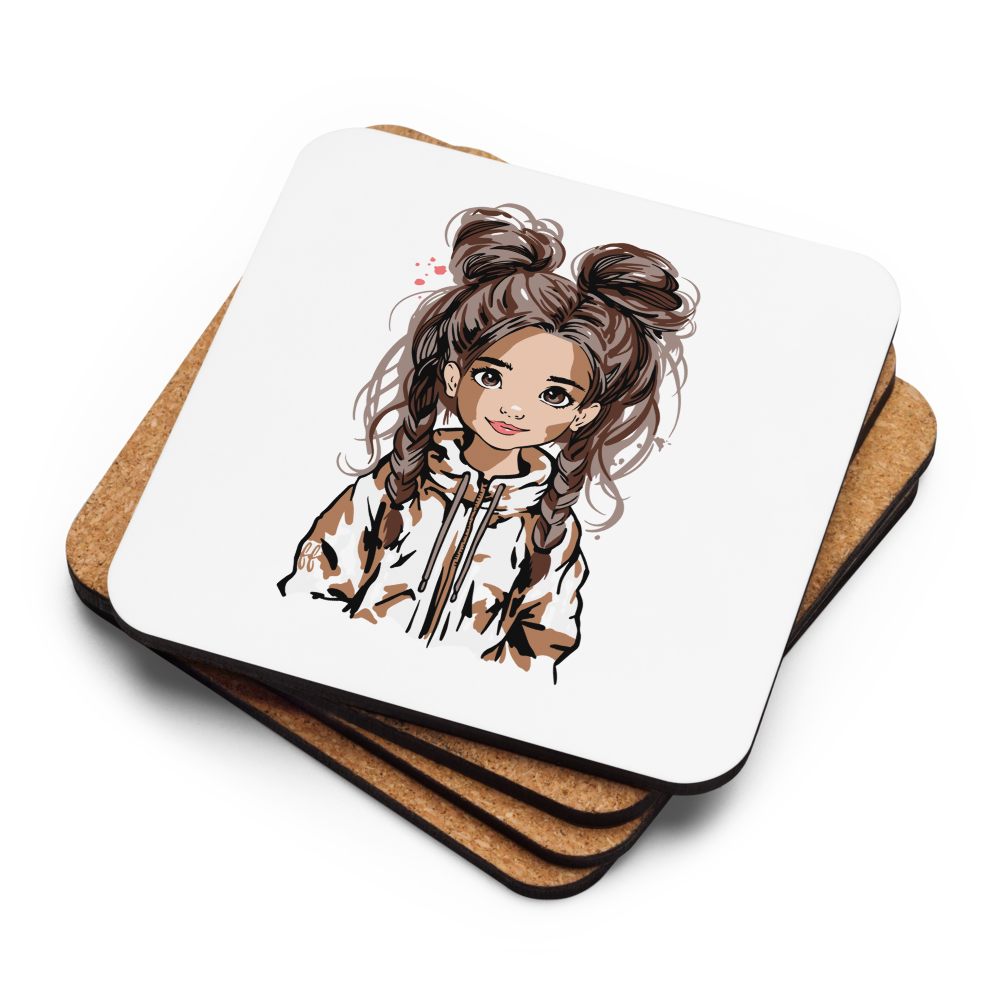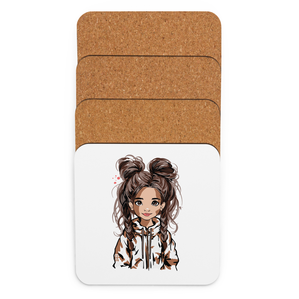 Korkuntersetzer „Double Bun Girl“ – stilvoller Getränkeuntersetzer mit modernem Mädchen-Motiv | 4er Set