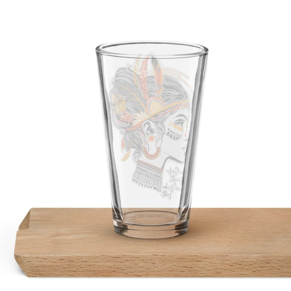 Pint Glass Boho „Die Seele fliegt“ – Frauenkopf mit Federn & spirituelles Design