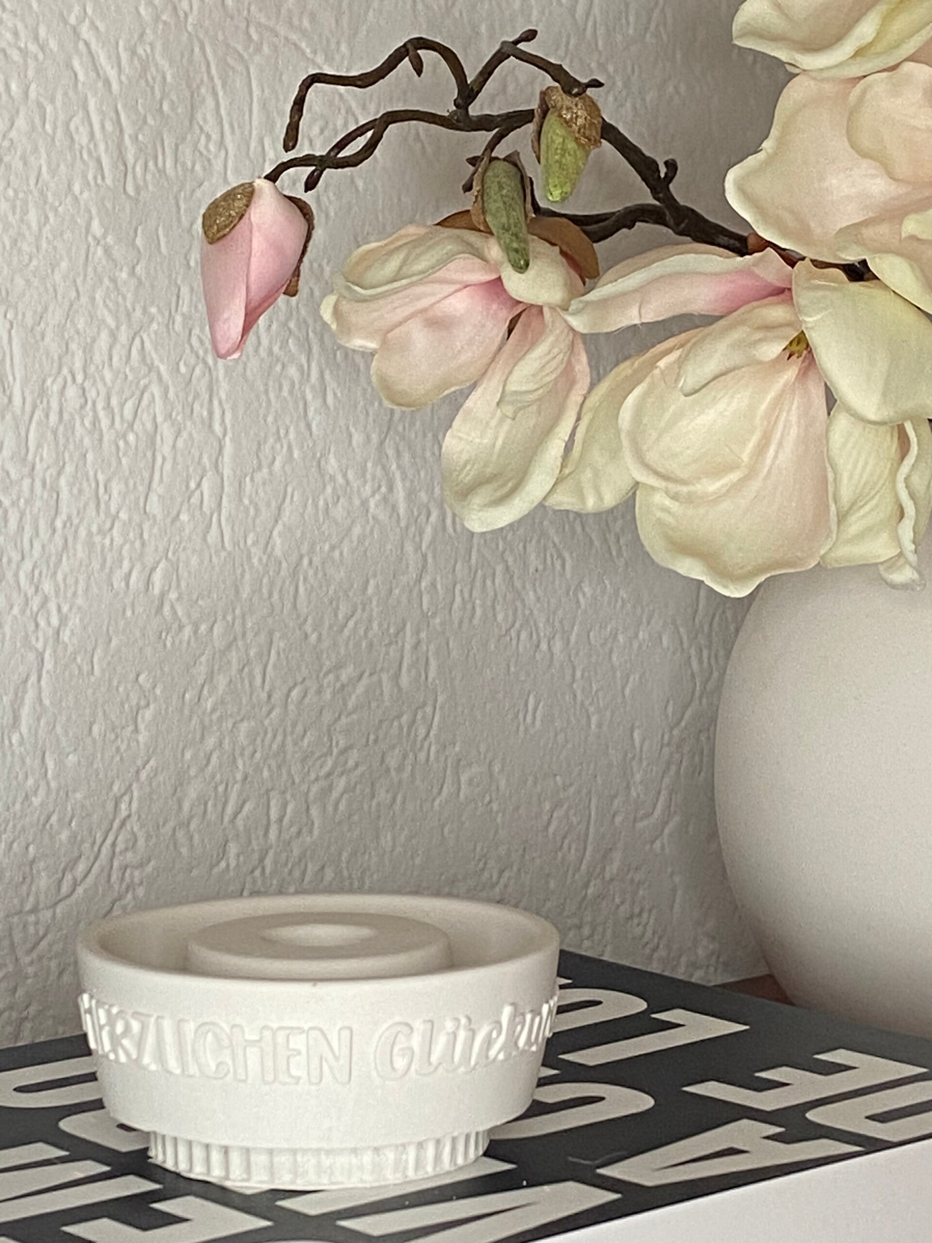 Warum Gratia? Gratia ist mehr als eine Dekoschale – sie ist ein Statement voller Dankbarkeit und Zuneigung. Einfach Kerze einsetzen, dekorieren oder verschenken – für Momente voller Stil und Emotion.